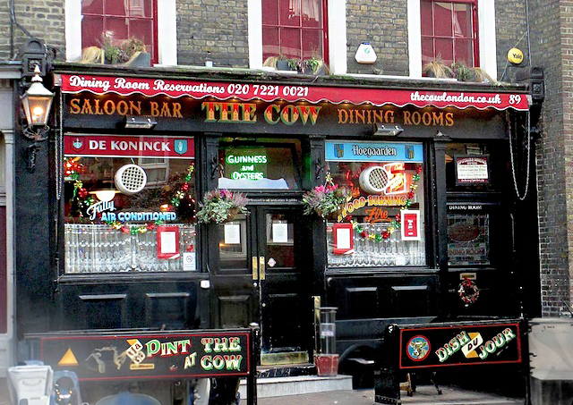 Sandwiched between a primary school and some very expensive houses sits a 2-story brick boozer called The Cow. It's unassuming to look at, but what lies inside is what could be considered one of the finest pubs in London.