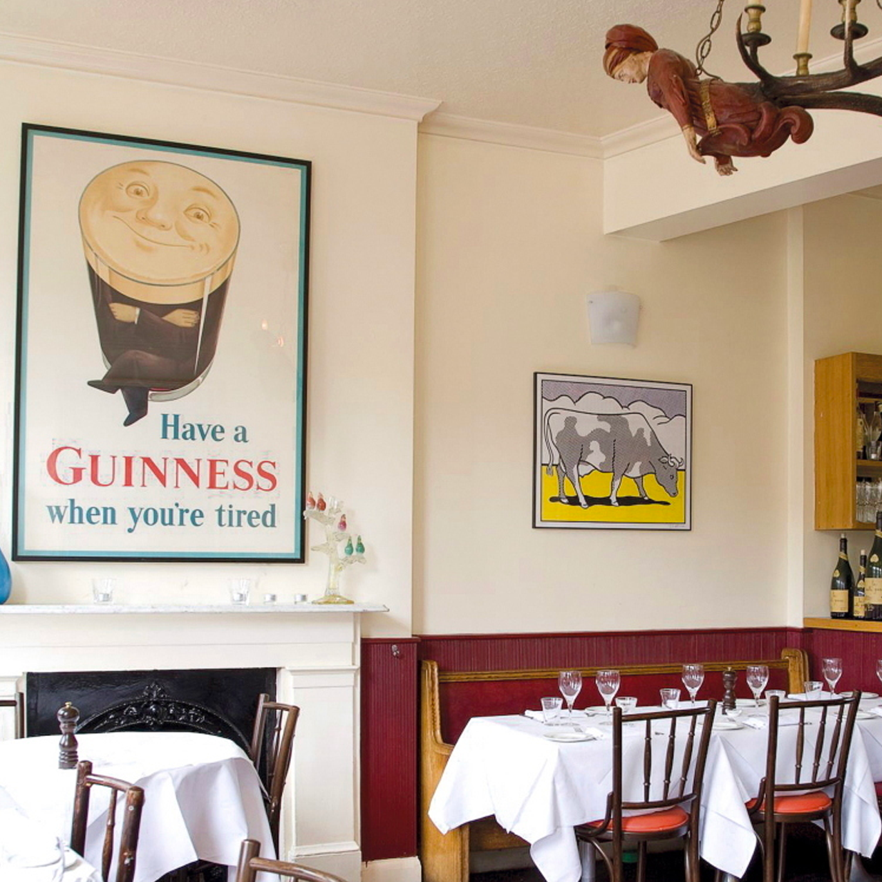What makes The Cow so special isn't just the Guinness, it's Tom's attention to detail. As the owner of The Cow he ensures the artwork to the furniture and every changing food menu, is considered down to the finest details. Fresh Oysters sit on ice on the bar and get shucked in front of you, and their restaurant standard food features retro classics such as Chicken Kiev and Bangers 'n' Mash. The draught lineup is no exception to Tom's careful attention, with lager from Germany (Paulaner obviously), cider from the west country and the best local pale ales! The fridges have only the best too including: Augustiner, Orval, Westmalle and even a French Breton Cider.